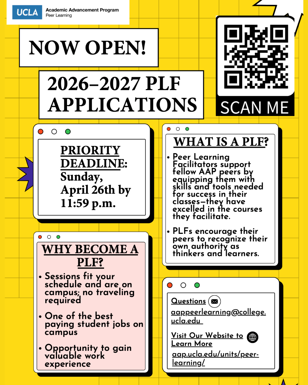 We are currently hiring Peer Learning Facilitators (PLFs) for the 2026–2027 academic year within the AAP Peer Learning Unit.