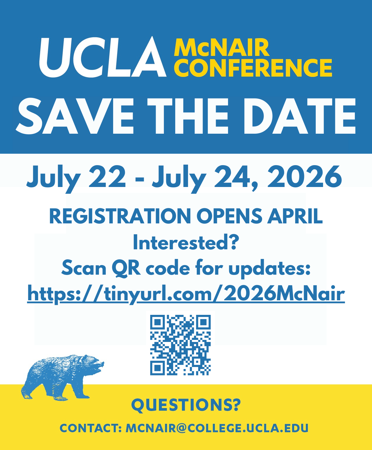 The 2026 UCLA National McNair Conference looks forward to hosting you this summer in the beautiful city of angels on the UCLA campus.